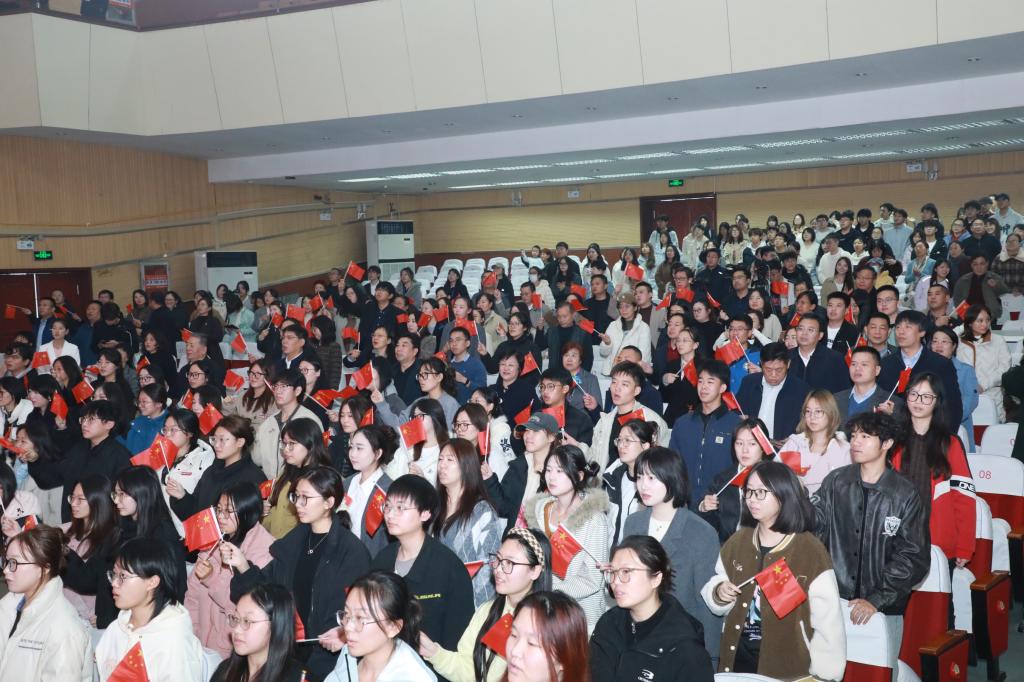 “铭记”篇章突出同心筑梦的民族团结。王伟光老师深刻发问:“这段英雄辈出的历史,究竟要铭记什么?”答案不在冰冷的史实,而在英雄的忠魂、团结的伟力,以及中国共产党铸牢中华民族共同体意识的钢铁誓言。满族教师与侨眷教师共唱《领航》,传递56个民族跟党奋进的坚定信念;我院教师团队朗诵《同根生,共命运》,以“同一棵大树根须”为喻,诠释56个民族同根共命运、携手向未来的主题。