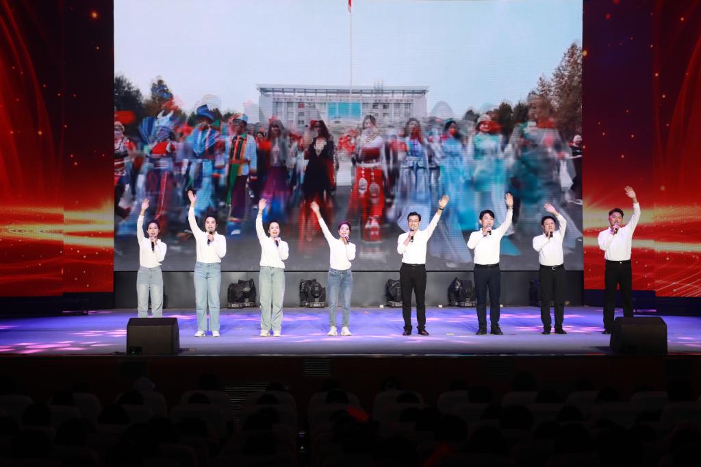 尾声《一堂课的约定》将“以青春承薪火,以行动筑共同体”的誓言深植人心。最后全体师生齐声高唱《我和我的祖国》,歌声嘹亮,情感炽热,深深表达了各族师生对伟大祖国的热爱之情。