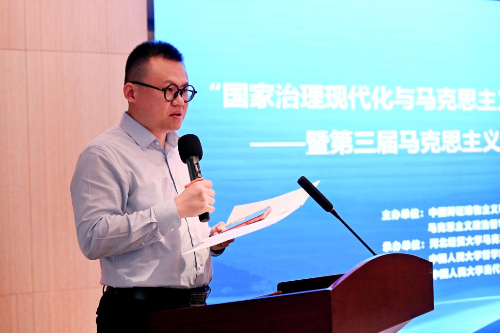 臧峰宇代表中国辩证唯物主义研究会、马克思主义政治哲学研究分会和中国人民大学哲学院,向与会的各位老师表示热烈欢迎,向承办本次会议的李英院长及其团队表示衷心感谢。他强调,国家治理现代化作为马克思主义政治哲学研究的重要议题,要以历史唯物主义来把握治理的本质,通过制度的完善与治理现代化找到全面深化改革领域诸多问题的答案。第一,要将以人民为中心作为实现治理现代化的前提。第二,要在矛盾运动中把握治理现代化的辩证法。第三,构建共建共治共享的社会治理格局,要激活社会连接的纽带,培育公共精神和责任感。在如何深入理解以什么样的现代化理论来指导现代化实践方面,他提出要用马克思主义政治哲学来有效整合各种正义思想资源,这对于促进社会公平正义、增进人民福祉具有重要的理论意义。