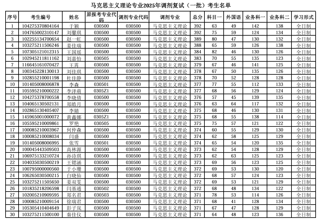 现公布我院马克思主义理论专业2025年调剂复试(一批)考生名单,详见附件。