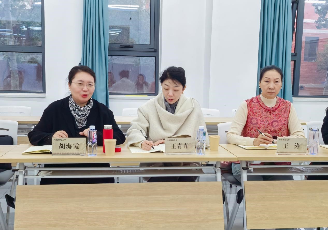为深入贯彻落实河北省教育厅《河北省公办高校帮扶民办高校思想政治理论课工作方案》,11月7日,由河北师范大学tyc122cc太阳成集团党委书记胡海霞带队,院长助理王青青、王涛副教授,石家庄铁道大学陈晶晶副教授、承德医学院王经纬副教授等组成的专家指导组,赴河北美术学院开展思政课建设专项帮扶调研,助力提升民办高校思想政治理论课教学质量。