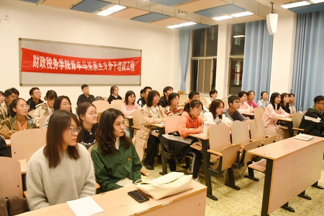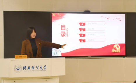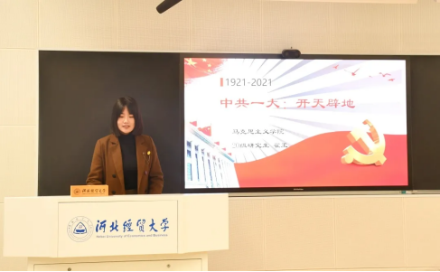 10月19日晚,我院2020级党的建设专业翟玉同学在三教B305为财税学院青马班师生讲授题为《中共一大:开天辟地》的专题党课,财税学院党委副书记胡卓理、团委书记安宁参加了此次活动。
