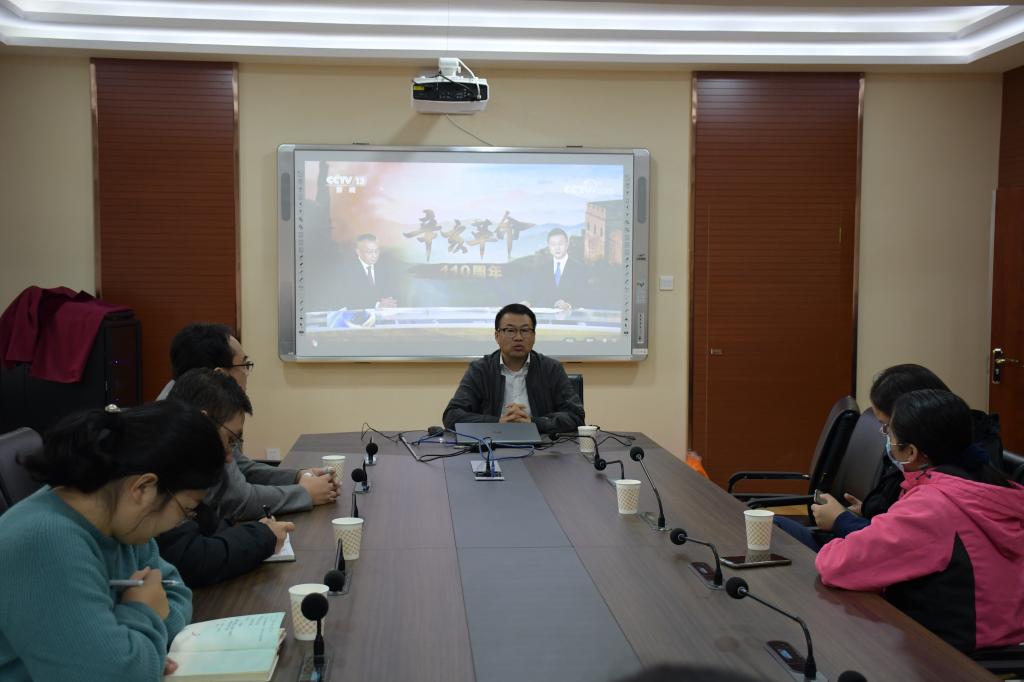 10月9日上午,纪念辛亥革命110周年大会在人民大会堂隆重举行。我院组织师生党员在学院会议室集中观看现场直播并召开座谈会。会议由学院党委书记王青原主持,各支部书记、教师代表和全体学生党员参加会议。