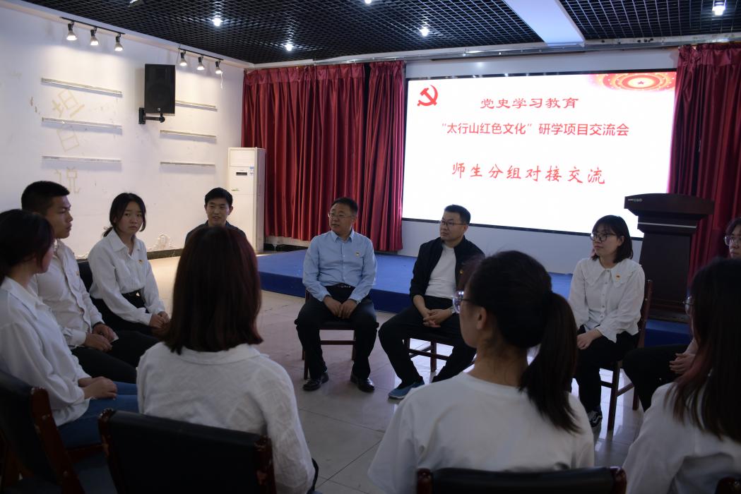 5月13日下午,我院党史学习教育宣讲团受邀参加旅游学院党史学习教育“太行山红色文化”研学项目交流会。会议由旅游学院党委书记董爱民主持,我院党委书记王青原、师生代表和旅游学院学生党员参加会议。