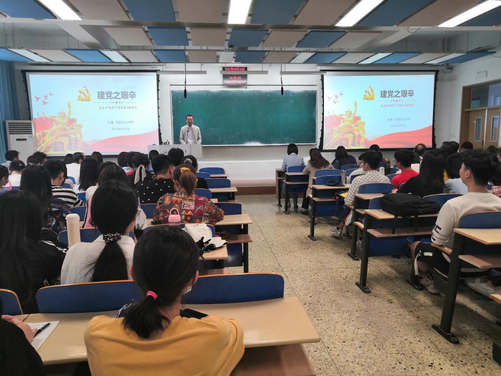 5月10日下午,学校党史教育宣讲团成员、我院“双带头人”工作室负责人马鑫博士应邀为商学院讲授题为《建党之艰辛——庆祝中国共产党诞辰100周年》的专题党课。商学院党员教师、学生党员、入党积极分子共200余人参加。