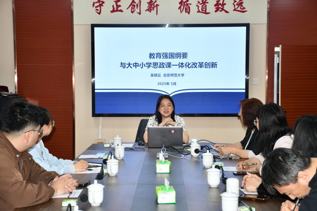 近日,学院在二办203举办“经典与当代”系列学术讲座,邀请北京师范大学教授、大中小学德育一体化国家教材建设重点研究基地副主任吴晓云教授作题为“教育强国纲要与大中小学思政课一体化改革创新”专题报告。报告会由学院院长李英主持,党委书记董佰壹以及部分青年教师参会。