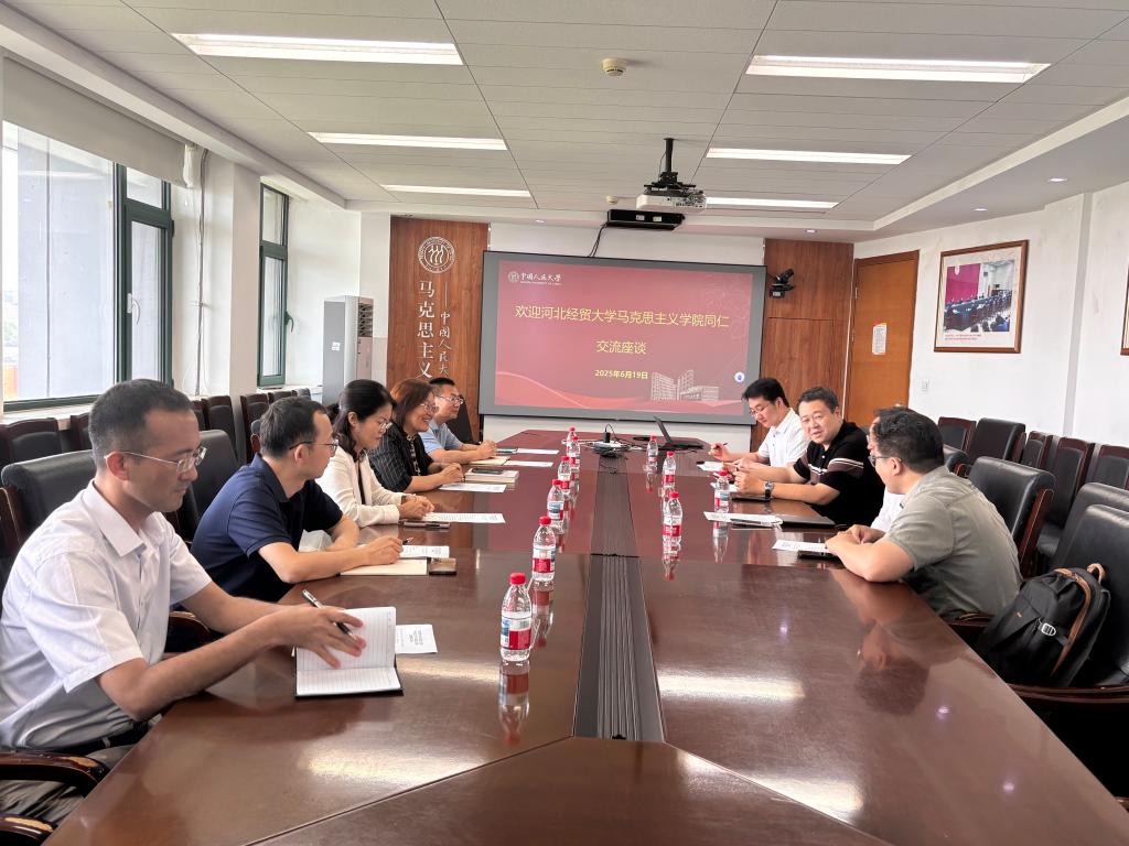 为进一步加强思想政治理论课课程建设,提升马克思主义理论学科建设水平,6月19日,我院党委书记董佰壹、院长李英一行六人赴中国人民大学tyc122cc太阳成集团学习交流。中国人民大学tyc122cc太阳成集团党委书记朱岩、副院长陶文昭热情接待了董佰壹、李英一行,中国人民大学tyc122cc太阳成集团青年教师刘进伟、陈明锟参加座谈。